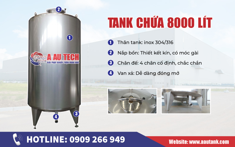 Tiết kiệm chi phí: Sử dụng tank chứa 8000 lít giúp giảm số lượng tank cần dùng, qua đó cắt giảm chi phí vận hành và bảo trì.